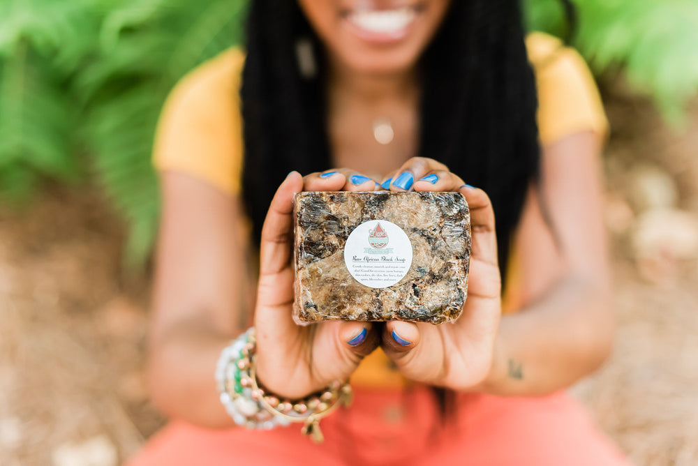 Black soap also is packed with antibacterial properties. One of the biggest benefits of African black soap is that it helps to kill off germs and bacteria from your skin which helps soothe certain skin conditions like acne and eczema and may even help slow down signs of aging. Raw black soap is not oily, and can be used for hands, face, body and hair.